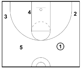 1 and 5 start at the top of the offense, slightly wider than the lane and at least a step above the 3-point line.